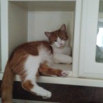 Bruno- rudy kocur z białą krawatką i skarpetkami, bursztynowe oczy.