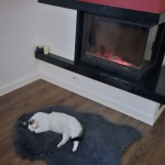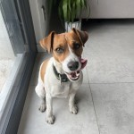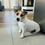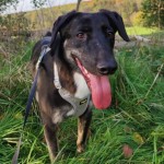 Średniej wielkości, czarny z białym krawatem pies.Ok 24 kg . Na przednich łapkach ma plamki biało brązowe. Jest bojaźliwy i nieufny. Wabi się Synek