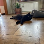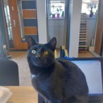 Czarna kotka rasy mieszanej ,bez ogona,z przyciętym uchem