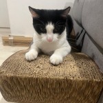Czarno-biały Trzy czarne łapy z białymi skarpetkami Jedna biała łapa Różowy nosek