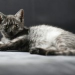 Szary mały kot rasy abisyńskiej z karmelowym brzuszkiem, dosyć płochliwa ale wychowywana i przyzwyczajona do czlowieka