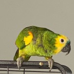 Zielony kolor piór na czubku ma kolor niebiesko-żółty