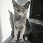 " Fumo" to kocur, rasy Rosyjski Niebieski, ma szarą, krótką sierść. Jest młody, ma 6 miesięcy. Szczupła sylwetka. Jest bardzo ufny.