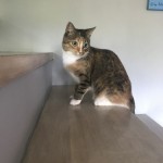 Kotka wysterylizowana, trikolorka , duże zielone oczy, mała 2,5-3kg, biały śliniak i brzuszek oraz łapki. Wabi się Rysia, słyszy na swoje imię. Ufna , może podchodzić do ludzi.