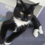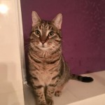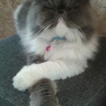 Dorosła kotka szaro-biała podobna do kota z reklamy Whiskasa. Nieagresywna, lecz stroni od obcych osób. Po sterylizacji.