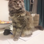 Koteczka 8 miesięcy, rasy maine coon, niebieska szylkretka klasycznie pregowana. Kotka jest chora, ma zapalenie układu pokarmowego i wirusa opryszczki z widoczną infekcja oczu. Wymaga stałego leczenia i weterynaryjnej karmy. Na znalezce czeka nagroda.