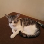 Roczna, drobna (szczupła), sterylizowana kotka, Cecha charakterystyczna: kilka białych, włosków między tylnymi łapkami i podobne z przodu na "klatce piersiowej". Boi się psów. Nie ma naciętego ucha i w dniu zaginięcia nie miała na sobie szelek.
