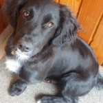 Czarny biały krawat, długa sierść, średniej wielkości..