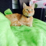 Ruda duża kotka z zielonymi oczami
