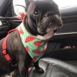 Buldog francuski czarno-białej maści, wykastrowany. W dniu zaginięcia miał na sobie zielono-czerwone szelki z charakterystycznym nadrukiem w arbuzy.