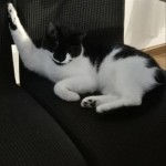 Czarno-biała, drobna koteczka. Pod szyją biała krawatka, na łapkach białe „skarpetki” (takie umaszczenie). Punia może być wystraszona