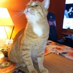Kot burasek pręgowany, ma długi ładny ogon. Nosił zieloną obróżkę, ale mógł ją zgubić.