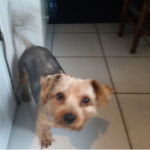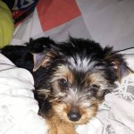 Piesek ma na imie Riko. York średniej wielkości waga około 5 kg . miał na sobie ciemną obroże , w dniu zaginięcia był miesiąc po objęciu wlosow.. Umaszczenie ciemne (z siwymi przeswitami ) na głowie brązowy .