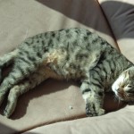 Średniej wielkości (około 4kg) bury pręgowany samiec po kastracji.