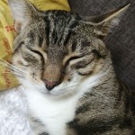 Kocurek w wieku około jednego roku. Niekastrowany. Biały brzuszek, brązowo-szara sierść, pręgowany. W dniu zaginięcia miał założoną czerwoną prowizoryczną obróżkę. Proszę o pomoc.