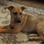 Jest to średniej wielkości, nieszkodliwa suczka o imieniu Tosia, krótkowłosa, umaszczenie przewaga brązu z dodatkiem rudego, ma białą szyję aż po sam brzuszek, brązowy nosek. Jedno uszko sterczącece-lewe, prawe-klapnięte.