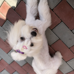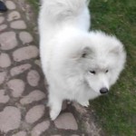 Pies ma tylko brązowe uszy reszta cała biała , w dniu zaginięcia miał obrożę żółtą z napisem nie dotykaj , oraz krzywą szczękę z wystającym zębem
