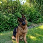 Pies łabi się Luck, ma czarną obrożę, bardzo przyjazny do ludzi