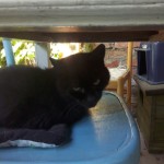 Two years old female cat, black. her name is Mimma, she doesn't trust people. She was sterilisade one week ago.