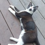 Czarno-biały kot z czarną łatką na lewym oku. Większy niż średnio koty. Przyjazny dla ludzi i lubiący wchodzić na drzewa. Nie reaguje na imię Śledź ale i tak go tak nazywamy.