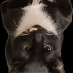 Mały pies w typie corgi, biało czarny bez ogonka