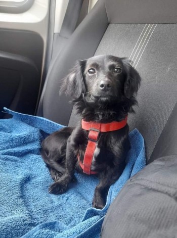 2,5kg suczka. Czarna, budową przypominająca jamnika (długa). Delikatne przełysienia na obu uszach. Sierść dłuższa. Sunia jest wychudzona.