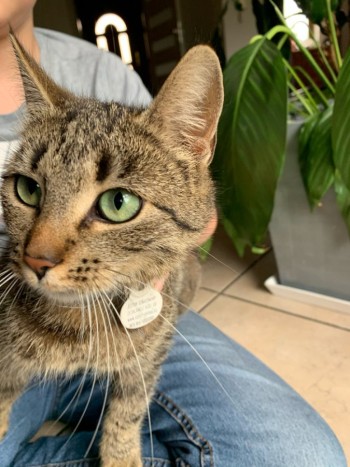Kotka z obrożą Foresto i zawieszką z mikrochipem.