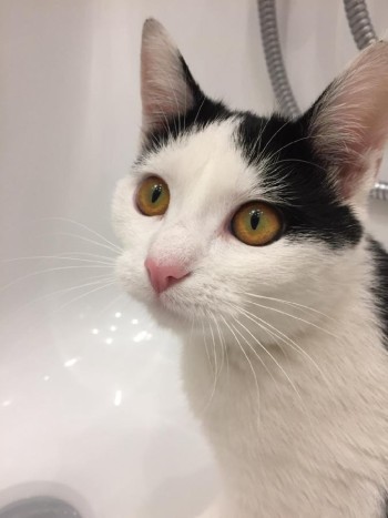 10-mies?ęczna kotka o biało-czarnym umaszczeniu