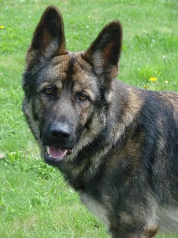 wilczasty, 16.miesięczny owczarek w czarnych szelkach, nieagresywny