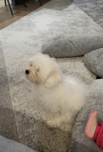 Pies rasy hawańczyk, maść biała, waga ok 6kg, piesek ma 6 miesięcy.