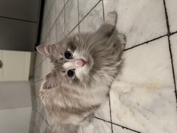 Angora turecka.Białe,dlugie włosy,niebieskie oczy.