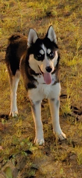 8 miesieczna sunia syberian husky...w dniu zaginienia z obroża i zawieszka z imieniem i nr.telefonu ...na dzien 2.04.2026 w wieku 1 rok i 5 miesięcy...