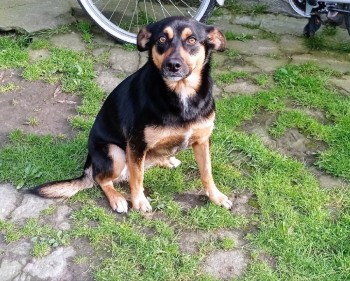 średniej wielkości, czarne umaszczenie, gładka sierść, wysterylizowana