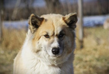 Smuga, to lajka o jasnobeżowo - białym umaszczeniu oraz ciemniejszym pysku. Ma charakterystyczny szczek. Ma gęste raczej długie futro
