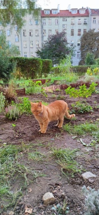 Wychodzący Rudy Kocur. posiada obróżkę z numerem telefonu i adresem