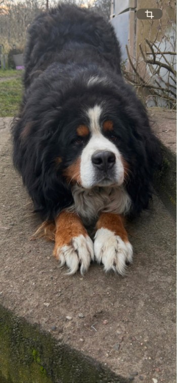Pako to duży piesek, umaszczenie triocolor, może być płochliwy wobec innych ludzi