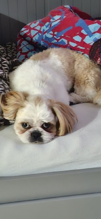 miał na sobie czerwoną obrożę, kolor jasno brązowy