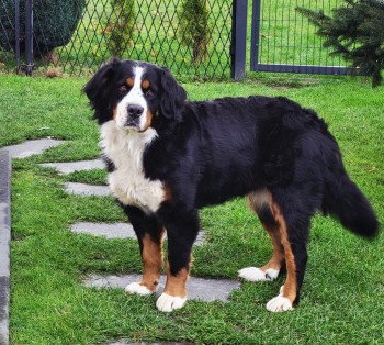 Elza ma 4 lata, to berneński pies pasterski. Jest bardzo spokojna, ale również nieufna. Uwielbia dzieci.