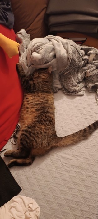Około 2 letnia kotka, wykastrowana, przyjazna, reaguje na swoje imię, ma charakterystyczny rudy palec na jednej z łapek