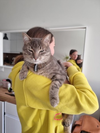 Szary kot, zielone oczy
