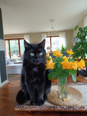 czarny kot ,reaguje na imię Bob