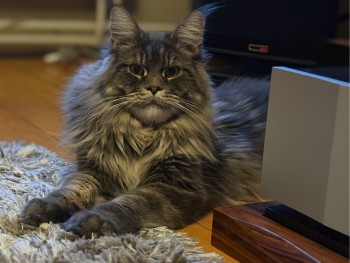 Duży kot domowy (rasa: Maine Coon/ duży długowłosy)