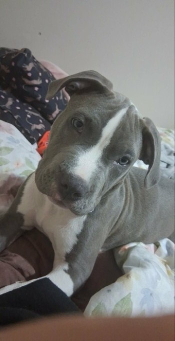Maści Siwo błękitnej, biały tors oraz brzuch, plamka pod nosem jasno różowa