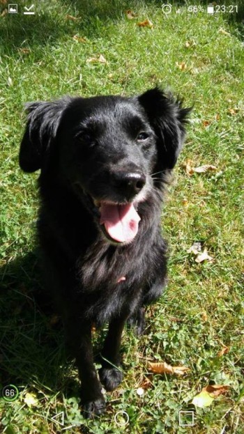 Snoopy to czarny mieszaniec ma średniej długości sierść i około 45-50 cm w kłębie.