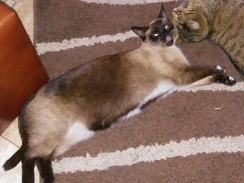Kotka w umaszczeniu colour point w typie kota syjamskiego, duża, więcej ciemnych barw. łagodna, nie boi się ludzi.