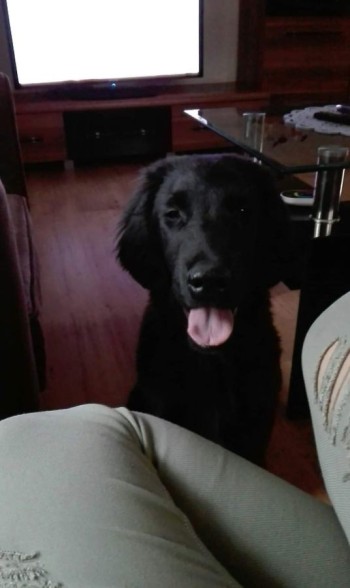 5 miesięczny szczeniak rasy Flat Coated Retriever. Reaguje na imię Fulka. Czarne umaszczenie.