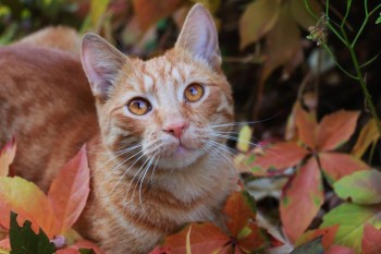 Rudy kocur z bursztynowymi oczami. Centkowany. Reaguje na imię LIPTON i szelesty plastikowych opakowań (saszetki/karma).