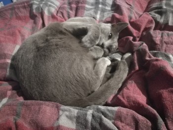 3-letni, dobrze zbudowany kocur rosyjski niebieski.