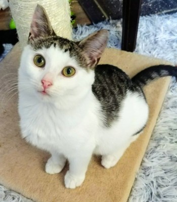 Biało bura kotka z charakterystyczną grzywką (jak Miś Koralgol)