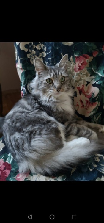 Luna jest 11- letnią kotką. Ma długą sierść o maści srebrno, białej. Futerko na klatce ma białe oraz białe łapki. Jest wyjątkowo mała jak na tą rasę.
